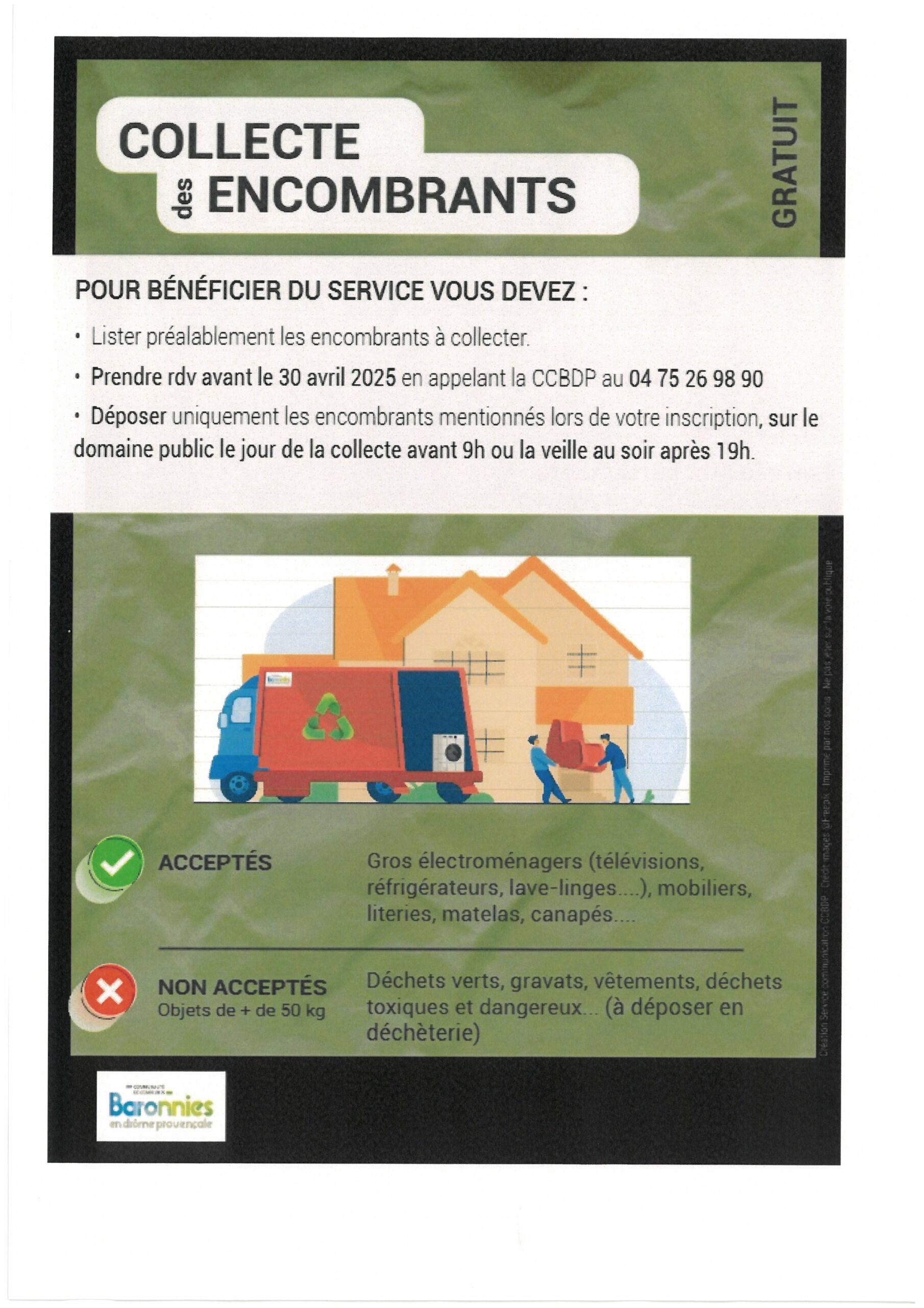 COLLECTE ENCOMBRANT RDV AVANT LE 30 AVRIL 2025